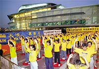 轉了一會後,我們開始靜靜地等待,一邊分析著,就目前的人數,還不能達到預期的效果。約七點半,我們又在廣場上轉了一大圈,還是感到時機不成熟。因為大家都希望這次整體修煉行為,而不應該像以前那樣零散、迅即被抓。