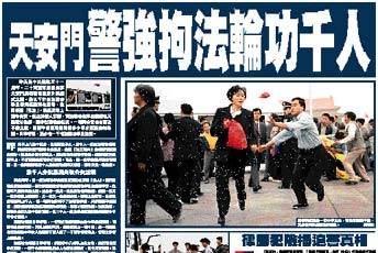 外電報導,一批內地法輪功學員今早在天安門廣場示威,並且派發傳單,抗議當局對他們的鎮壓活動,身穿制服及便衣公安隨即上前制止。由於示威人數太多,公安被迫封鎖廣場部份地區,並調來多輛巴士將法輪功學員載走,估計有約一千名法輪功學員被公安扣押。