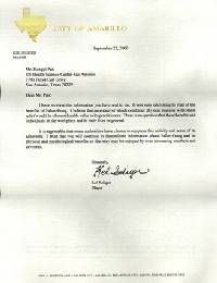 同一天,在距離盧堡克市以北約一百五十英里的艾默瑞羅市,市長在他予法輪大法學員的回信中對中國當局對法輪功的鎮壓表示遺憾,並鼓勵學員繼續洪傳法輪大法以使更多的人民受益。