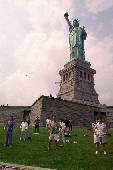 節日的小島熱鬧非常,過往遊客摩肩接踵。在這方圓幾百公尺的小島上,幾乎能看到世界上各種種族、國家的遊客,能聽到各種不同的語言。學員們拿出自帶的小錄音機,在自由女神像下的草坪上開始煉功。