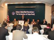 【明慧網2001年10月12日】2001年10月10日下午美國政界,學術界,宗教界和非政府組織等美國各界代表人士應「法輪功之友」邀請在華盛頓DC美國國家媒體俱樂部召開了「中國國家恐怖主義:對法輪功的迫害」研討會。「法輪功之友」董事會成員,前美國駐匈牙利大使,馬克帕默先生主持了會議。與會者並分別從政治、學術、信仰自由和心理學的角度對法輪功問題進行了討論,並一致譴責中國江氏邪惡集團鎮壓法輪功這一國家恐怖主義行為。