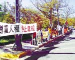 【明慧網2001年10月13日】世界日報10月12日華府訊,美國國務院和中國大陸代表官員自九日起一連三天於國務院展開雙邊人權對話,由於布希訪問中國大陸在即,大批來自美加地區的法輪功學員九日起集結於國務院大廈前舉牌請願,呼籲全球正義同盟國家全力打擊恐怖分子之餘,也不要忘了中國大陸官方恐怖組織「六一○辦公室」對法輪功學員的摧殘鎮壓。兩方談判代表應正視北京鎮壓法輪功之問題。