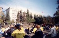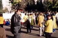 這些牌子使我們步行的目的對路人和路過的汽車來說更加明確,更好地起到了講清真相的作用。我們最大限度地利用它們,有時我們轉過身去,以便近處的路過者能看見。兩家不同報社的記者偶然地看到我們行進中舉著的橫幅便採訪了我們。更多的行人和過往的車輛因看到我們的橫幅,向我們表示了他們的支持。另外,我們也接受了一個因特網報紙的採訪。