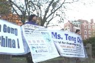 【明慧網2001年11月23日】感恩節前夕,11月21日下午,大華府學員又一次彙集在中國駐美大使館前,強烈要求釋放在中國被非法關押一年半的美國紐約居民滕春燕女士。