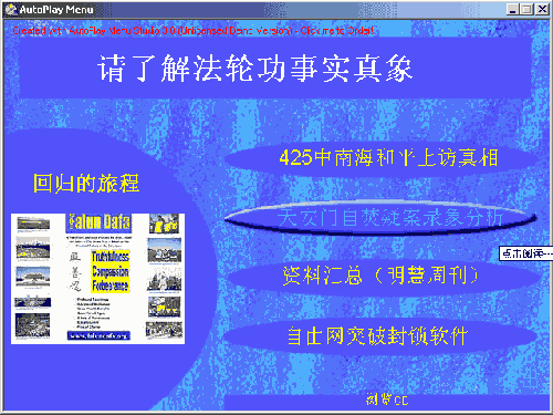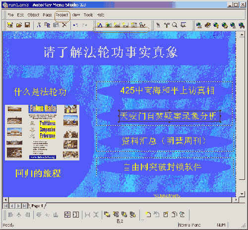【明慧網2001年12月25日】很多學員刻錄了大量的事實真相資料電腦光盤(CD),散發給周圍的人,效果很好,但也有不少不懂計算機的人接到CD後,問如何用,怎麼打開。因為很多人不太懂計算機,不會用資源管理器打開CD看。為了更便利的說明真相,擴大可以使用真相CD的人群,我們可以製作能自動運行的資料CD,這樣,任何人只要把CD放入Windows計算機中,CD就可以自動運行,彈出索引文檔或者索引窗口,方便大家使用。