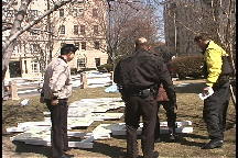 【明慧網2001年3月13日】 自99年7月起華盛頓(DC)的大法弟子每天都來到中國大使館門前煉功請願,說明真相,要求停止鎮壓。3月8日上午,乘大法學員不在的時候,中國使館的工作人員把誣蔑大法的展板偷偷放到了天安門花園裏。學員發現後,立即向美國警察說明了情況。中國大使館這種惡意挑釁的做法違反了美國法律。警察出面與大使館進行交涉,並警告中國大使館,如果再看到類似舉動,要按照違反美國聯邦法律處理。