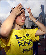 據香港法輪功發言人簡鴻章說,這幾天在香港集體練功的,包括來自澳洲、台灣、日本、韓國、歐美、澳門和香港的學員,他們將藉這次國際論壇,要求全球關注中國大陸鎮壓法輪功的不人道做法。