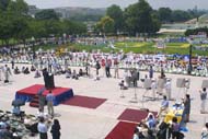 7月19日,清晨八點,以「十萬火急:緊急援救在中國被迫害的法輪功修煉者」為主題的大集會以集體煉功拉開了帷幕。近兩千名弟子從四面八方趕往位於華盛頓DC市中心的獨立紀念碑。他們中有經1500里步行趕到華府的波士頓弟子,有從遠自佛羅里達州一路騎自行車趕來的弟子,有從加州穿越美國的汽車旅行洪法弟子,更有世界各地的大法弟子關山萬里,遠涉重洋,大家一路風塵匯聚華府。
