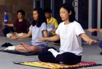 法輪功學員說這個結合了東方宗教理論和緩慢打坐鍛煉的運動在美國有上萬名追隨者,其中大多數是華裔。在華盛頓地區,法輪功學員在公園,在國會山,甚至在地鐵站外面煉功。
