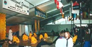 功法表演在莊嚴的普度音樂中拉開序幕,接著是柔和的煉功音樂。為了讓人們更多地了解大法以及目前在中國發生的慘無人道的迫害,西人學員精心設計了一套解說詞,在功法表演的同時為觀眾介紹功法的簡單動作要領、機理、法輪功在世間的洪傳、及目前中國對法輪功的殘酷迫害。柔和的音樂,優美的功法,清晰的講解,祥和的能量場彷彿把人們帶到了另一個世界,吸引了大量的人駐足觀看。許多人詢問了在中國發生的迫害,認真閱讀了我們的展板,表示了對法輪功的支持。許多人早已聽說了法輪功,這是第一次親眼看到,他們所見到的與中國政府的宣傳多麼的不相符。很多人索要大法資料,詢問在哪裏學功、買書。還有的人模仿我們的動作,跟我們一起做。最後一天快結束時,來了一位小伙子,他從加拿大溫哥華來,問了許多問題,遲遲不願離去,反覆拿起<<轉法輪>>不忍放手,因為我們只有一本作為展示,他不好意思開口要這本書,但又真捨不得走,我們學員看出他的心思,把書給了他,他高興得像天真的孩子終於得到了寶貝一樣,樂呵呵滿意而去。我們深深地感受到了師父的慈悲,以不同的方式讓有緣人得法。