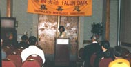 2001年7月18日,波特蘭大法學員在Double Tree Hotel會議廳舉行新聞發布會,揭露以江氏為首的中國政府對法輪功學員的慘無人道的迫害。一些學員發言,並放了侵犯人權及自焚疑點錄像帶。這是本市第一次舉辦這樣的活動,從寫邀請信,發邀請,更新展板,租賃場地,準備發言稿等等,學員們克服了許多困難,投入了大量的時間與精力,臨近會議前,一對西人夫婦學員每晚只睡3-4小時。整個過程非常成功,在準備發布會的過程中大家都向內找,去發現自己工作中的執著,每個人都在洪法與講清真相中提高與昇華。