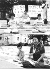 6)在華盛頓DC國際法會後,弟子們認識到給華人講清真相的重要性和嚴重性,所以當有華人時,都是放中文的錄像。一弟子打坐出定後,看到一西人女士向他招手。該弟子過去問有甚麼事,她說:「我要簽名。」弟子非常感動,因為當時正在放中文錄像,她根本聽不懂講的是甚麼,只是看了錄像上的一些畫面而已。