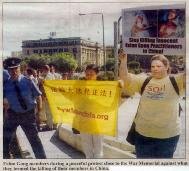 報導說法輪功學員聯絡人之一的李嬰表示,昨天參加抗議的一位學員熊開宇的母親亦是法輪功成員,去年十一月上訪北京信訪局後,即被關入勞教改所迄今。她說,信訪團的職責就是要聽取人民和僑胞的冤情,協助改正、解決,但該團對於法輪功成員在中國大陸上所受到的虐待不聞不問,甚至拒絕聽取海外法輪功學員的投訴,「有虧職守」。