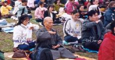 下午,天氣一直陰沉沉的,風也越刮越猛,時而還夾著雨。但是,學員們迎風而坐,單手立掌,正念除惡。在正與邪的較量中,學員們決心用自己的承受,強烈要求江澤民政府停止對所有法輪功學員的迫害,喚醒更多的世人站出來支持正義。