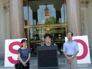 八月二十日由日本學員帶大家到上野恩賜公園去集體煉功洪法。公園遊客不多,流浪者倒不少。台灣學員抱著非常慈悲的心一一分送資料給這群失落的流浪者,但願他們也能早日得法,找到回家的路。煉完功大家決定到中共大使館發正念。於是大家坐地鐵到大使館。沿路也分送了不少資料給路人。到了大使館,共分三組,每組20人。輪到我們這組,大家穿著印有大法字樣的衣服,還有一部份人穿上印有「還我師父清白」、「還法輪大法清白」、「控訴XX殘殺中國法輪功學員」的背心,手舉「真、善、忍」的三角旗站在大使館對面的人行道上。這時正中午豔陽高照,站得汗流浹背,但心想日本學員不怕風吹雨淋或頂著烈日驕陽,站四個小時,日復一日。而我們只是短暫的20分鐘,這點苦算甚麼?我要把握這難得的時刻,趕緊以純淨、堅定的心,發正念除去邪惡勢力。但願這些人能清醒過來。大家輪流上陣,表達了心願才離開。匆匆趕回旅社取行李,再坐地鐵直奔機場,結束了四天的「日本之行」。