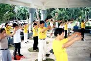 | 和約翰.米基尼斯議員、湯米合影 | 在街上洪法煉功 |