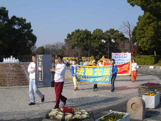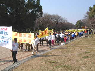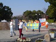 與會全體學員多次發正念,邊學法邊交流了當前在學法、發正念、講清真相這三件大事上,如何做得更深入、更紮實、更自覺。13日天氣晴朗、風和日麗,寒冷的冬天竟是3月中旬的氣溫。大家一早就趕到了名古屋市最大的公園--名城公園,集體三發正念,煉功。下午一點準時開始了洪法遊行。隊伍肅穆、整齊,沿途散發著講清真相的資料,給名古屋廣大市民留下了深刻、嶄新的印象。