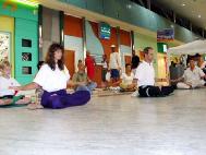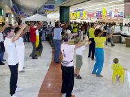 之後,幾十名學員作了功法表演。五套舒緩優美的功法在煉功音樂中徐徐展示給大家,那種發自心底的祥和寧靜感染著在場的每一個人。原本陰霾多雲,涼風中夾雜冷雨的天氣也一下平靜溫和下來。