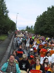圖片報導:2002年9月18~28日,法國海外省瓜德路普法輪功學員在體育節上洪法
