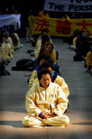 【明慧網2002年10月22日】2002年10月21日,江氏抵芝加哥的前一天。來自世界各地的1200多名法輪功學員聚集在芝加哥市中心的聯邦廣場,舉行大型煉功和新聞發布會,抗議江XX在中國對法輪功的迫害。這次的和平抗議是連續數日的系列活動,法輪功學員來自美國、瑞典、英國、澳洲、台灣等。