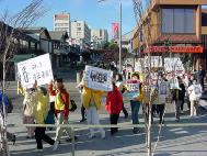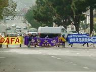 江XX在休士頓住的飯店對面的街上,到處是大法弟子在發正念和煉功。不明真相而前來歡迎江XX的人也在其中。因為他們來時已經沒有地方了,只能擠在大法弟子之間。許多大法弟子抓緊這一機會跟他們講真相。漸漸明白了真相的人們眼裏流露出來的是友好的表情。到了第二天,情況更加明朗化,到處都見到弟子們在與他們聊天。一位老伯伯走過來對我們說:「你們真辛苦,誰給你們出的經費?」當得知我們都是自費的時候,聽得出他很受感動。他又問了諸如4.25是怎麼回事之類的問題,拿了VCD和真相資料離去了。有兩位非常固執的留學生一直與學員們談到深夜兩點鐘,知識分子固有的觀念的「殼」打破之後,他們表示會去看《轉法輪》。