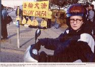 法輪功代表敘述了法輪功在中國受迫害的情況,和在江XX高壓下延伸到國外來的迫害,並列舉了今年四月江XX訪問德國期間德國警察對法輪功學員所採取的過激行為。