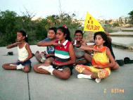 29日下午2點,來自漢城、大田、大邱等地的大法弟子與釜山同修一起,來到主賽場附近的各大主要路口,向來參加開幕式的14個國家的人們展開了大型洪法。一部份同修集體煉功,優美的煉功音樂配上緩慢柔和的煉功動作,引來大量行人駐足觀看;一部份同修發放印有「法輪大法好」、「真、善、忍」字樣的遮陽帽及扇子、真相傳單等;還有一部份同修在各主要路口打起了「法輪大法好」、「真、善、忍」等橫幅,各國運動員紛紛向我們招手致意。同修們在活動中始終持續發正念,這次洪法自始至終進行得很順利。