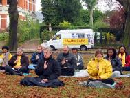 英國大法弟子在中使領館前發正念(圖)