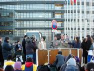 12月18和19日兩天,來自法國,英國,德國,瑞士,比利時,愛爾蘭,意大利,丹麥,荷蘭,愛爾蘭,奧地利等歐洲國家的部份學員,在法國斯特拉斯堡歐洲議會大樓前集體煉功、發正念,呼籲歐盟反對香港23條立法。
