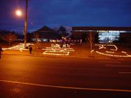 清晨四點,僻靜公園的一角,昏黃的燈光下,人影穿梭。他們或靜靜地打掃,或懸掛橫幅。他們是法輪大法的學員,正在準備每天例行的晨煉。只不過今天將有其它地區的學員加入,因為九點整將從這兒開始蘆洲地區的洪法步行。