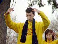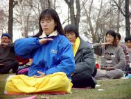 | 電台記者採訪 | 記者們學習法輪功功法 | |