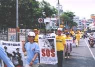 【明慧網二零零二年三月二十五日】高雄地區法輪功學員三月二十三日上午九時至十一時,在鳳山地區舉行「SOS緊急救援長春法輪功學員」步行活動,呼籲善良的人們伸出援手,共同制止江氏政府大面積抓捕和殺害中國長春法輪功學員。