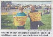 法新社6月15日報導,由於法輪功和冰島民眾的抗議活動,中國國家主席江澤民不得不改變日程安排。星期五晚冰島總統為江氏夫婦舉行官方晚宴,江在宴會進行到一半兒時從座位上站起來唱歌,此舉令所有出席宴會的人們感到詫異。