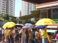 太陽報記者昨日在光州街頭,看到三位韓國人派發韓文印製的法輪功宣傳單張。據其中一位成員樸先生表示,法輪功雖被中國鎮壓,但他認為法輪功是健康的。身為白領的樸先生表示,他修煉法輪功三年,已能成功戒酒。南韓不少年輕人沉迷酗酒,他認為法輪功能協助年輕人擺脫沉淪。他說,南韓現有二萬人修煉法輪功。(資料來源:<中國事務>)