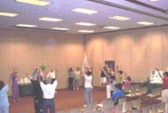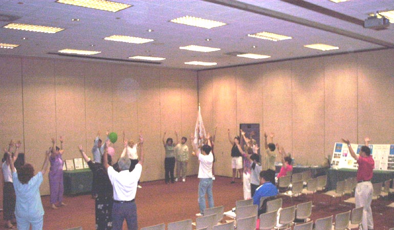 接下來,全體與會者共同觀看了介紹法輪大法功法和法輪大法在新澤西的錄像片。