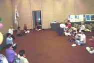 慶典儀式的會場布置得莊嚴而祥和。主席台正前方懸掛著「法輪大法」和「真善忍」的橫幅。橫幅下方的桌子上擺滿了曼茂斯縣各級政府官員為這次慶典活動所發布的褒獎狀和嘉獎令等。會場的四周擺放著介紹法輪大法的圖片展板。