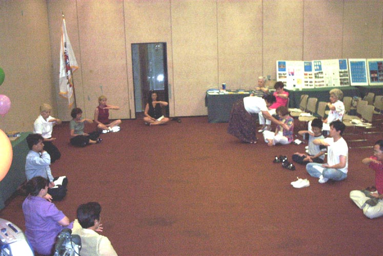 隨後,法輪功學員向前來參加當天活動的當地市民教授了法輪功功法。來自當地的各族裔居民認真學煉了全部五套法輪功功法,並同法輪功學員親切座談交流。許多人紛紛留下聯繫電話,希望以後能多參加法輪功的煉功活動。