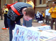 後來我於2000年夏天接到了海外一所大學經濟學院的入學通知書,並取得了全院最高的獎學金,攻讀經濟管理碩士。那是一個美麗、整潔、一切都有條不紊的國家,人民安居樂業,雖然學業非常繁重,但是在那裏的生活很開心,因為我又可以在藍藍的天空和綠綠的草坪上和功友們一起自由的煉功了,再也不用擔心會因此而被遭拘捕了。海外的生活更是讓我親眼目睹了法輪功在海外洪傳的盛況,這一祥和的功法在海外五十多個國家和地區迅速洪傳,這恐怕也是迫害者始料不及的吧。雖然人們一開始聽到的都是從中國官方報導轉載過來的對法輪功的污衊之詞,但是當人們親眼目睹了法輪功的祥和及法輪大法修煉者身上所展現出來的善良、慈悲、理智和大忍,無數善良的人們被深深地打動和吸引,謊言不攻自破!其實早在師父92年剛剛開始出來傳法的時候,就說過:將來世界上會有很多人來學這個法,世界上人人都會知道法輪功。其實對於今天所發生的事情,特別是中國所發生的一切,在世界上很多國家的一些先知者,預言家都有所預言。想想,在短短十年時間內,法輪功迅速傳遍全球五十多個國家和地區,上億人修煉,取得眾多褒獎,超越一切種族、膚色、年齡、文化、國家的界限,所到之處如一股清流,淨化人的心靈,提升人的道德,這決非人力所能為!然而在海外,每每看到從大陸出去的民眾,向他們提及法輪功時的神態,心裏便不覺感到心疼,那是在從世界其他任何地區來的人們臉上都找不到的表情:害怕、冷漠和麻木。我感到深深的悲哀!我在想中國人民啊,確實經歷了太多的磨難和挫折,經歷了太多的運動和鬥爭,面對再一次的全民洗腦和殘酷鎮壓,人們真的麻木了,但是,誠如孔夫子曾說過的:「人之初,性本善」,當我一遍又一遍地友好耐心地告訴從國內那樣一個封閉的環境中來的人們,在那表面虛假的「繁華」和平靜之下掩蓋著怎樣的浩劫和悲哀,人們整天聽到、看到的都是怎樣赤裸而又膚淺的謊言,鎮壓者怎樣的殘暴和修煉者在如此不公對待下所展現出來的怎樣的善良和大忍,我真的從人們眼中讀到了越來越多的真誠和理解,從那麻木表情的背後看到了越來越多那曾漸漸逝去的善良。是啊,真善忍,這是生命賴以生存的根本啊!誰能離開他呢?如果一個生命連真善忍都要背離,都要打壓,都要反對,那不等於是魚兒要離開水,人要離開空氣一樣嗎?其實我所做的一切不過是想以我作為一個法輪大法修煉者的親身經歷告訴人們:「請一定記住,法輪大法好,真善忍好,你的生命會因為這一念而擁有美好的未來,真的。」