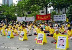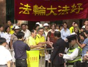 法輪大法信息中心7月2日報導,6月30日至7月1日香港學員連續29小時靜坐請願,要求江停止在國內及海外鎮壓法輪功。連日來香港遣返了世界各地逾百的法輪功學員,限定請願活動在指定地點,盡一切可能不讓江看到法輪功學員和任何穿著黃色衣服的人。