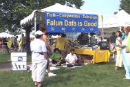 8月22日,悉尼弟子在「香港文化藝術節」上就香港最近發生的警察誣告法輪功學員及錯誤判決,向與會者、媒體和悉尼政府官員講清真相,並向香港律政司司長曾蔭權遞交了請願信。一位女士震驚地說:中國江澤民政府太糟糕!太邪惡!