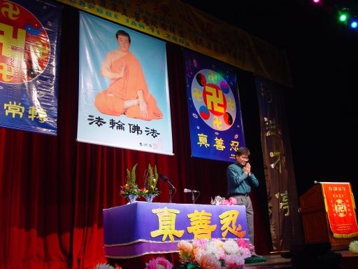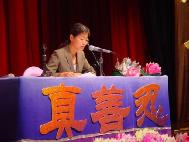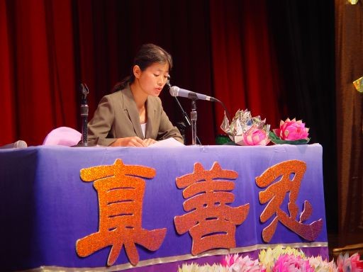 集體發正念後,大會開始。全體學員們首先向師父致意,並重溫了師父的「新年問候」。在合唱團一曲「法正乾坤」之後,共有十八位學員上台講述了修煉心得,還有許多稿件因時間有限未能宣讀。一位學員代表所在的煉功點彙報了她和同修們緊跟師父正法進程,學法、講清真相和發正念的活動。還有學員向大家詳述了新加坡大法弟子在旅遊點向中國人講清真相的正念正行。另一位工程師暢談了他和幾位學員在過去的一年多裏走訪了新加坡所有的建築工地,為上萬名中國籍勞工帶去法輪大法的美好的感人經歷。有的弟子側重講述自己在過去的一年來參加國外法會及正法活動的感受和在法理上的提升。澳大利亞戴志珍的發言是有關她和她的丈夫陳承勇在中國大陸的正法事蹟,催人淚下。也有弟子懷著無限感激之情描述了大法給她們全家帶來的身心上的變化。馬來西亞和印尼的同修也做了發言,受到熱烈歡迎。會後許多學員表示:這次法會非常成功,發言稿都很感人、深刻。這反映出學員們隨著在法理上認識的深入,整體提高,整體昇華,謹遵師父的教導,更加積極主動地投入到多種形式的正法洪流之中,講清真相,救度可貴的中國人。