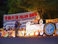 13日、14日連續兩晚,澳門學員在中聯辦對面公園舉行燭光晚會,悼念被迫害致死的大法弟子。