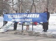 【明慧網2003年1月15日】多倫多太陽報2003年1月13日報導,法輪功支持者們從昨天開始在中國領事館外面舉行三日抗議,要求〔中國江氏集團〕結束對法輪功修煉者們的虐待。
