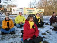 【明慧網2003年1月15日】1月13日德國法輪功學員柏林中領館前為期三天的請願和燭光守夜活動進入第二天,柏林及臨近城市的法輪功學員參加了這次全球同步請願活動。請願活動揭露了江氏集團對法輪功學員迫害的又一次升級,要求立即停止對法輪功學員的殘酷虐殺,同時聲援法輪功學員在美國伊利諾伊州地方法院提起的對江氏及其一手成立和操縱的610辦公室「滅絕種族罪」的控訴。