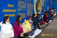 【明慧網2003年1月15日】2003年1月12日以來,法輪功學員在世界各地舉行為期三天的和平請願和燭光守夜,揭露江氏政治流氓集團對法輪功的野蠻迫害,要求江氏集團立即停止虐殺。