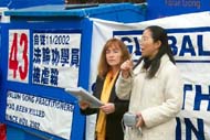13日中午1點,舉行新聞發布會,揭露江羅政治流氓集團殘酷迫害大法弟子的新罪行,呼籲民眾關注,共同制止屠殺。至截稿時為止,CTV、世界日報、新唐人電視等數家媒體對呼籲活動進行了現場採訪。