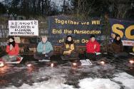 【明慧網波士頓訊】波士頓法輪功學員於1月13日、14日兩天舉行了靜坐、燭光悼念等一系列的活動,呼籲各界人士關心,幫助制止發生在中國的對法輪功的虐殺。2002年11月以來,海外披露出43起法輪功學員被迫害致死的案件,這是在一些受到迫害的法輪功學員及其家屬在美國聯邦地方法院以滅絕種類罪對江進行了起訴後發生的。