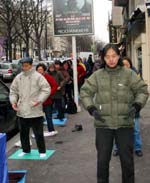 很多路人停下腳步仔細看學員掛出意大利語「停止對法輪功學員的屠殺」的橫幅和大幅的有關迫害的照片。有的人還當場學習了功法。因為學員長期在領事館前和平抗議,跟附近店鋪的工作人員都已經非常熟悉了。附近的商店的工作人員和客人們聽到從11月以來有43名法輪功學員失去了生命,感到非常震驚,表示實在無法理解為甚麼江政府對中國的普通老百姓是如此的殘暴。他們看到學員們在寒風中堅持向中國政府和民眾呼籲,很感動,主動給學員提供免費咖啡和巧克力。還有一位經常路過的先生主動停下來說,我看到報紙上報導了你們的消息,希望你們繼續努力。