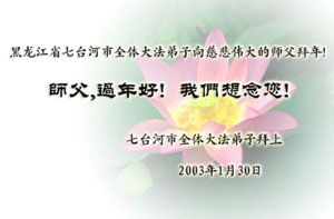 我們哈爾濱大法弟子想念您,在新春佳節到來之際,向您致以最崇高的敬意,並給您拜年:師父過年好!借此機會向師父表達我們的心願。