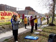 於是,老伴和孫子繼續發資料,我在路邊對著那位警察開始煉功,他興致勃勃地看我煉。第一套功法第一遍煉完,他那裏雙手合十跟著煉起來了。第二遍,第三遍,再煉第三套……